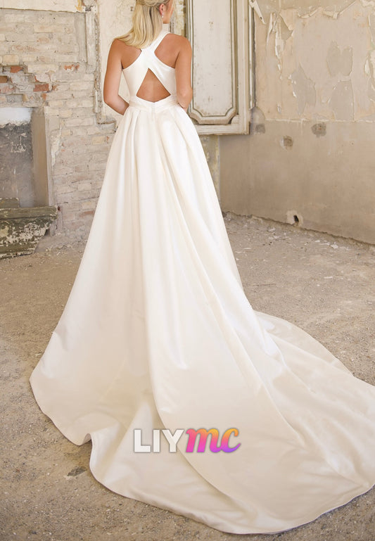 Scoop Sleeveless Satin A-Line Simple Wedding Dress