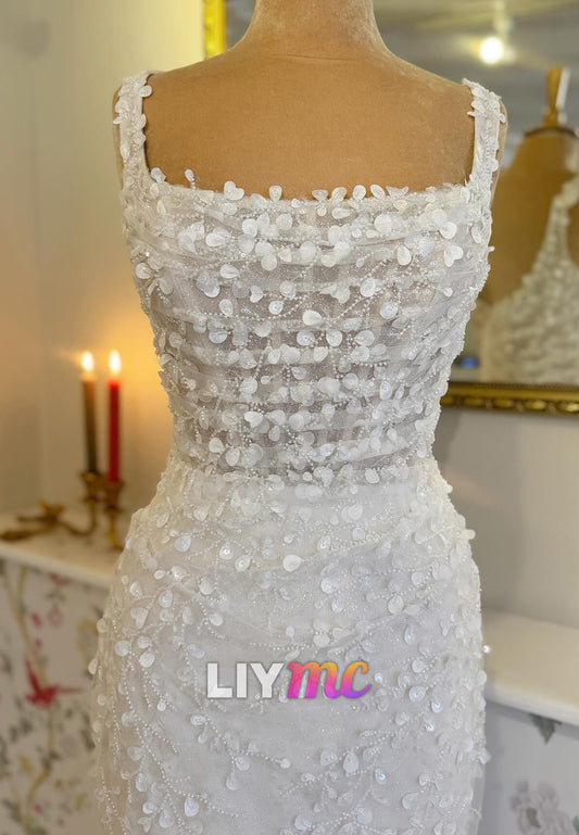 Square Spaghetti Straps Beaded Embroidery Sparkly Mermaid Wedding Dress