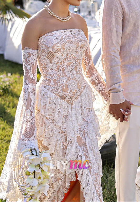 Straight Across Lace Appliques Mermaid Wedding Dress