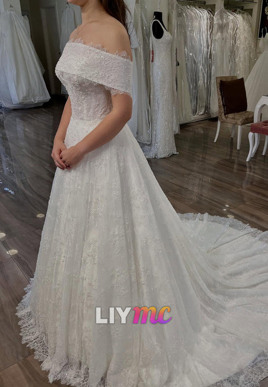 Straight Across Sleeveless Lace Appliques A-Line Wedding Dress