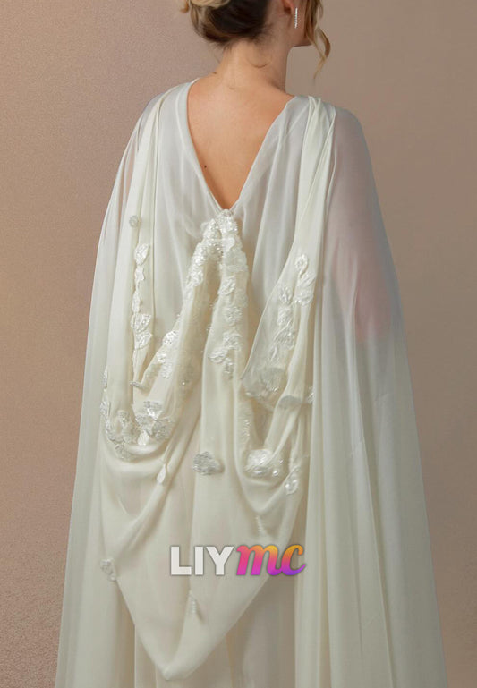 Straight Across Sleeveless Lace Appliques Sheath Wedding Dress