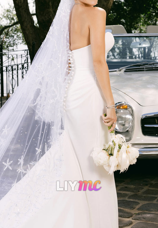 Sweetheart Button Slit Sleek Mermaid Simple Wedding Dress
