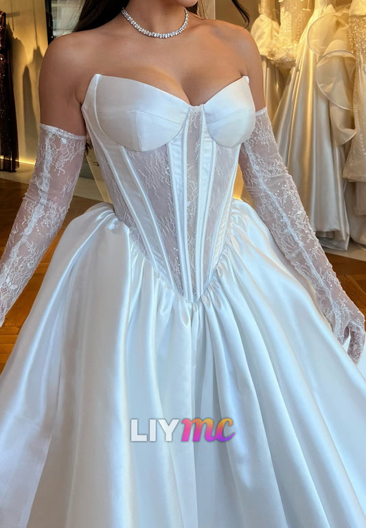 Sweetheart Strapless Appliques Satin A-Line Wedding Dress