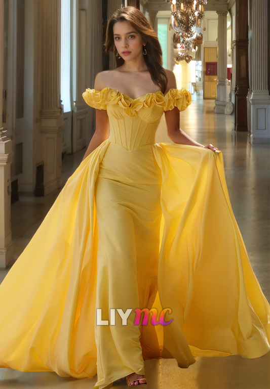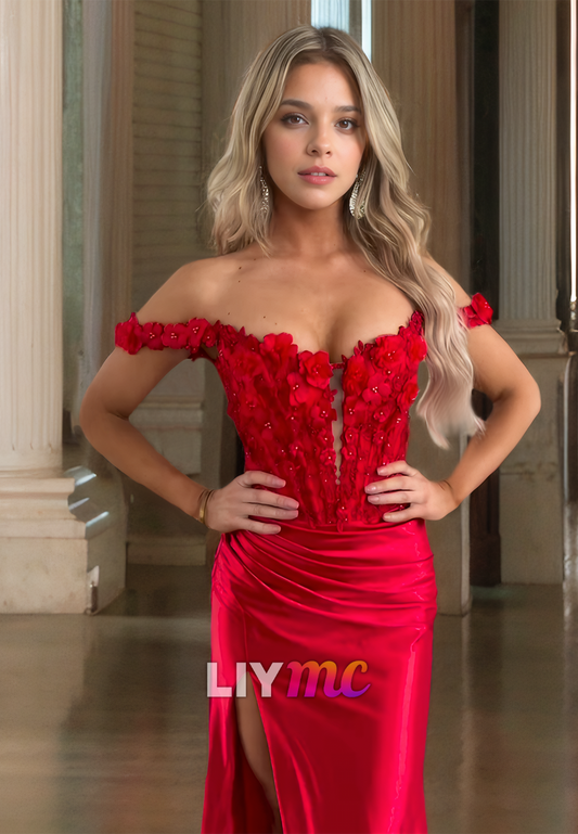 Off-Shoulder Sleeveless Floral Embellished Mermaid Prom Dress
