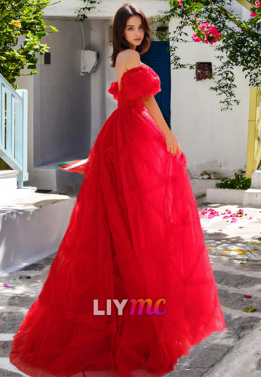Sweetheart Puff Sleeves Tulle A-Line Pretty Prom Dress