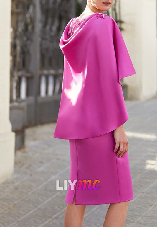 Scoop Short Sleeves Appliques Two Piece Sheath Mother of Bride Dress