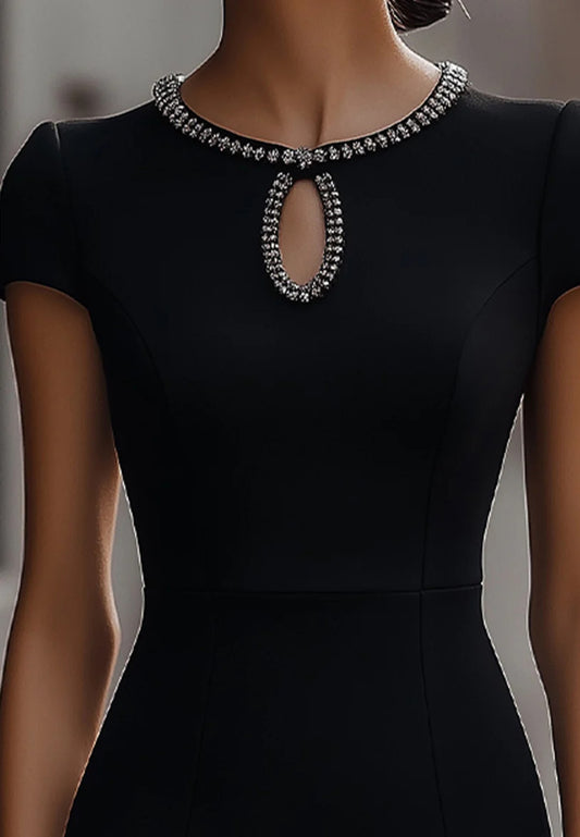 Scoop Short Sleeves Sleek Sheath Midi Bussiness Dress