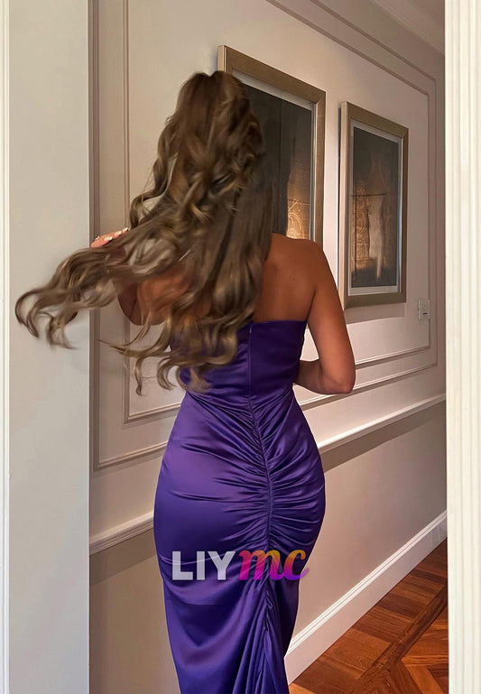 Sweetheart Side Slit Pleated A-Line Evening Dress