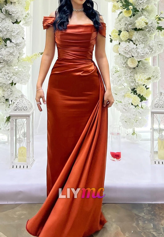 Off-Shoulder Spaghetti Straps Pleated Sheath Evening Dress