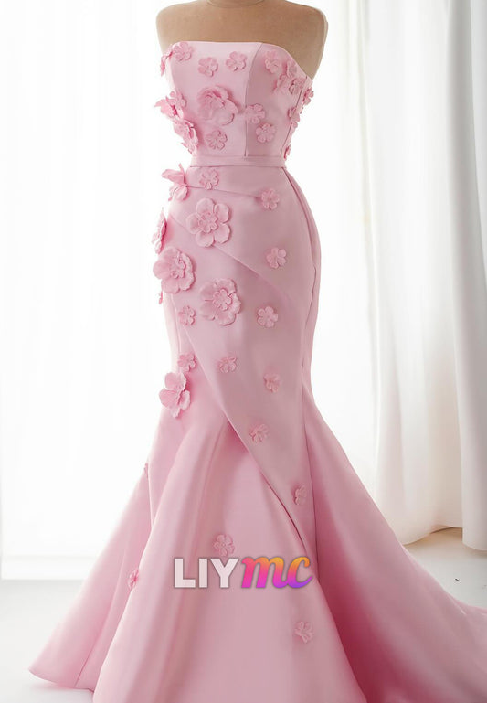 Straight Across Sleeveless Floral Embellished Mermaid Evening Dress