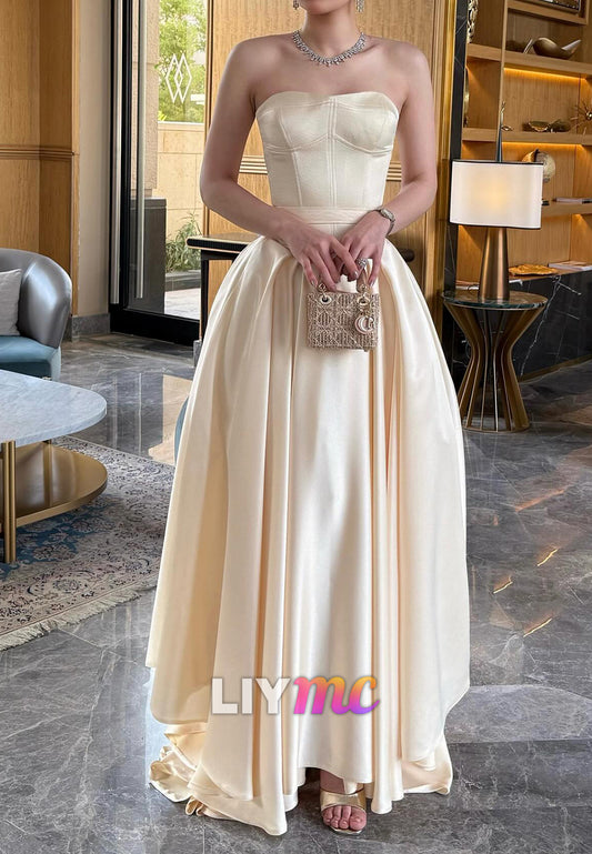 Off-Shoulder Strapless Satin A-Line Midi Formal Dress