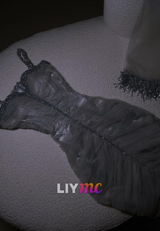 Sparkly Asymmetrical Beaded Embroidery Sheath Prom Dress