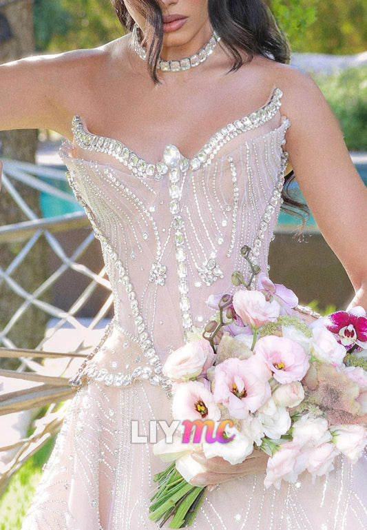 Sweetheart Beaded Embroidery Pearl Sparkly Mermaid Prom Dress