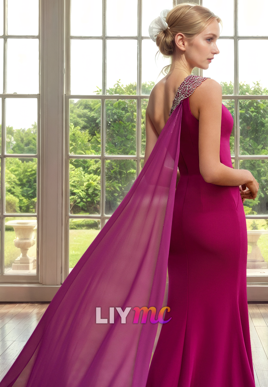 One Shoulder Sleeveless Pleated Sheath Mother of Bride Dress
