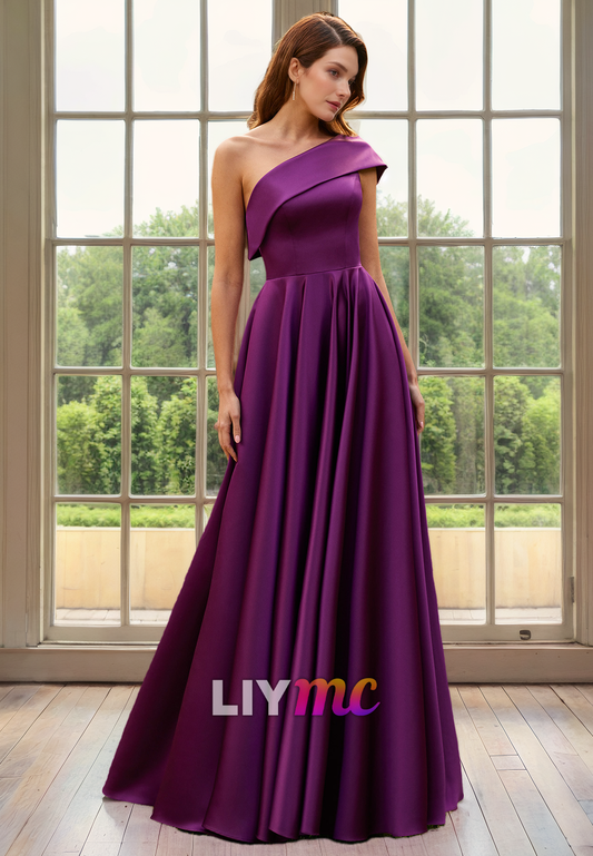 Off-Shoulder Strapless Pleated Satin A-Line Evening Dress Mothert of Bride Dress
