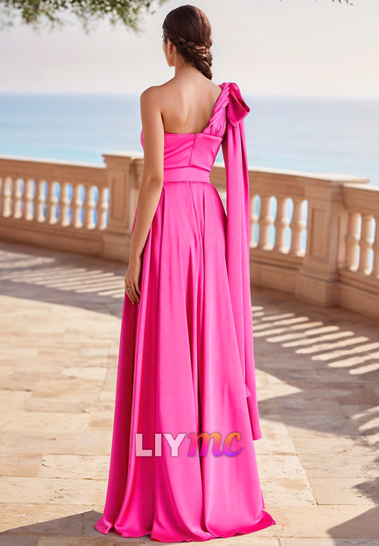 One Shoulder Sleeveless Belt Pleated Evening Dress A-Line Mother of Bride Dress