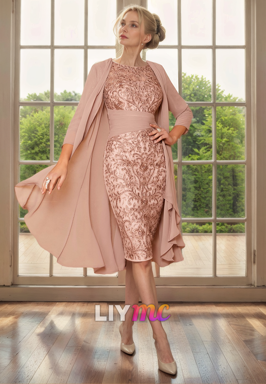 M1135 - Scoop Half Sleeves Appliques Knee-Length Mother of Bride Wedding Guest Dress