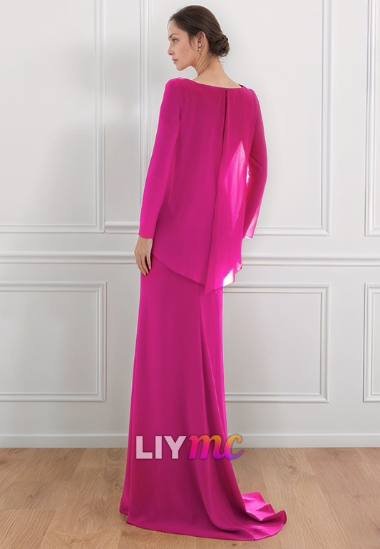 Scoop Long Sleevs Chiffon Sheath Mother of Bride Dress