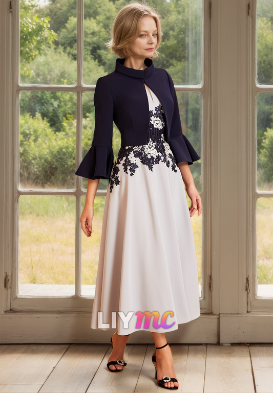 High Neck Sleeveless Sleek Tea-Length Sheath Mother of Bride Dress