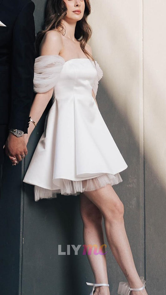 Off-Shoulder Cap Sleeves Short Satin A-Line Wedding Dress