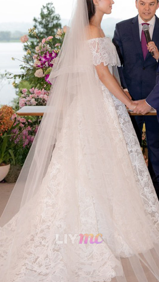 Off-Shoulder Cap Sleeves Sleek A-Line Wedding Dress