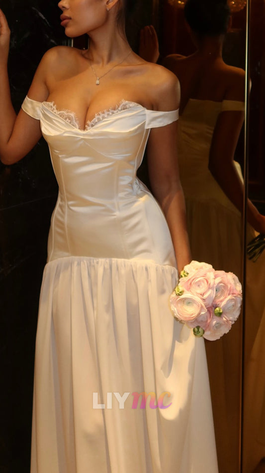 Off-Shoulder Sleeveless Sleek A-Line Wedding Dress