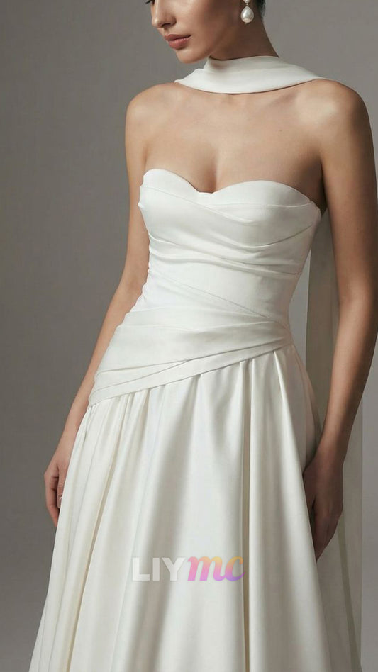 Sweetheart Sleeveless Satin A-Line Wedding Dress with Scarf