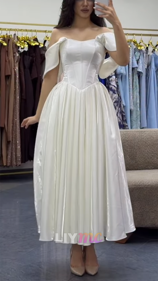 Off-Shoulder Sleeveless Satin A-Line Civil Wedding Dress