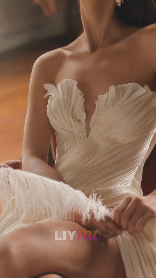 Sweetheart Strapless Pleated Side Slit A-Line Wedding Dress