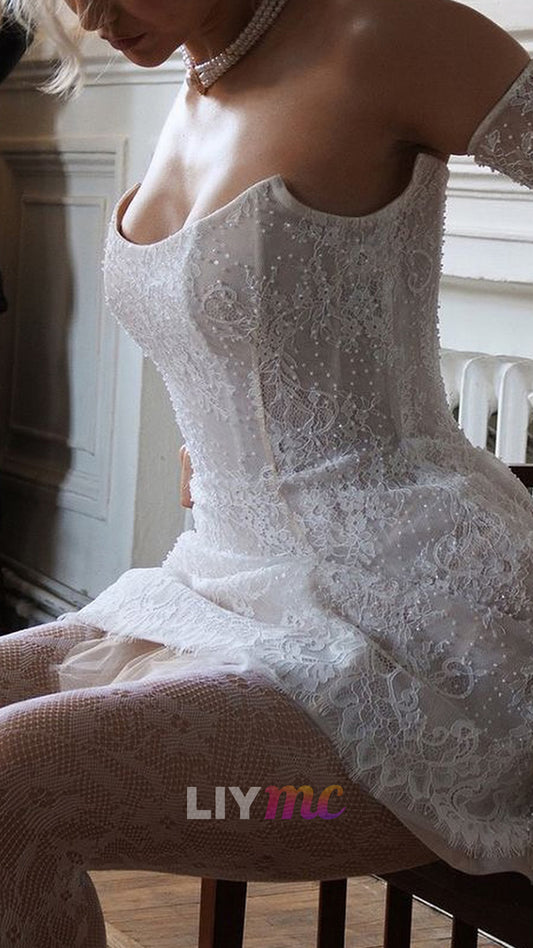 Strapless Sleeveless Lace Appliques Short A-Line Wedding Dress