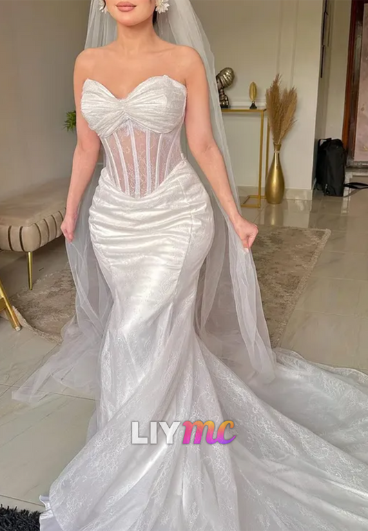 Sweetheart Sheer Lace Appliques Mermaid Wedding Dress