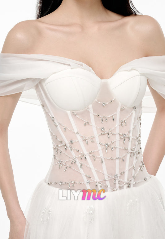 Sweetheart Sleeveless Appliques Tulle Floral Embellished A-Line Beach Wedding Dress