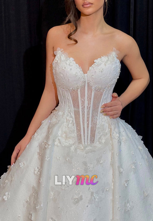 Sweetheart Sleeveless Floral Embellished A-Line Wedding Dress