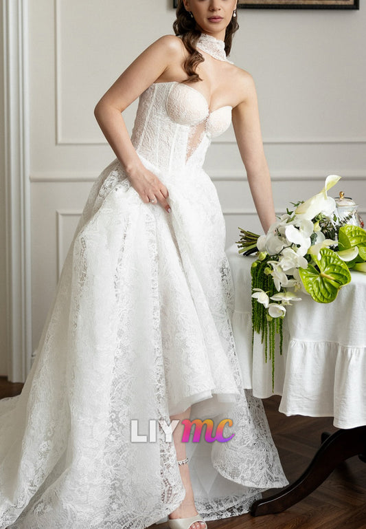 Sweetheart Sleeveless Lace Appliques A-Line Wedding Dress