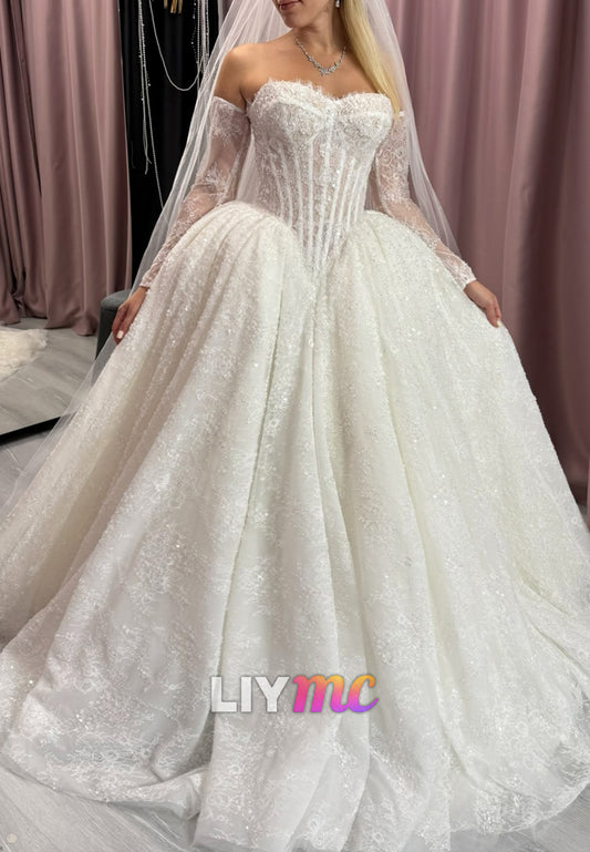 Sweetheart Sleeveless Lace Appliques Tulle Ball Gown Wedding Dress