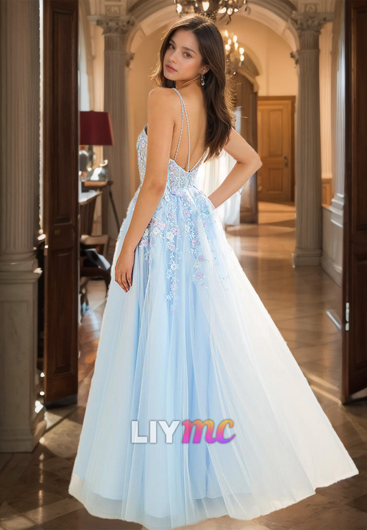 Sweetheart Spaghetti Straps Appliques Tulle A-Line Prom Dress