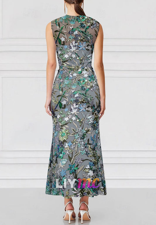 Trumpet Cocktail Dresses Embroidered Elegant Formal Wedding Guest Floor Length Sleeveless