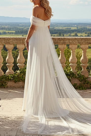 LW021 - A line Sweetheart Tulle Boho Wedding Dress
