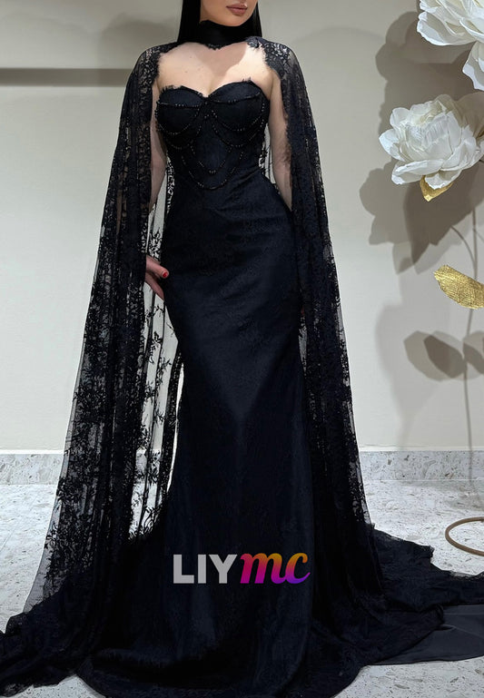 Sweetheart Long Sleeves Lace Appliques Mermaid Evening Dress