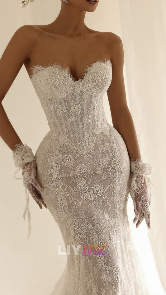 Sweetheart Sleeveless Strapless Lace Appliques Mermaid Wedding Dress