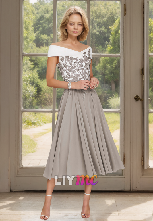 Off-Shoulder Spaghetti Straps Appliques Sheath Mother of Bride Dress