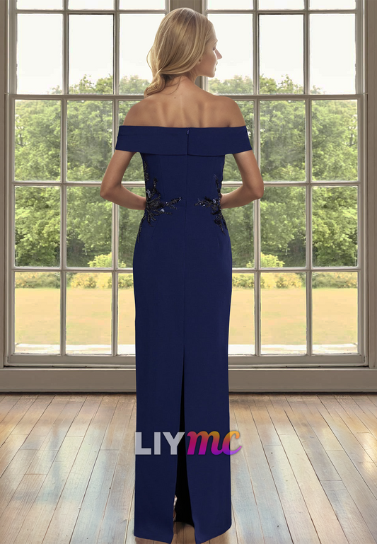Off-Shoulder Strapless Appliques Sequins Sheath Mother of Bride Dress