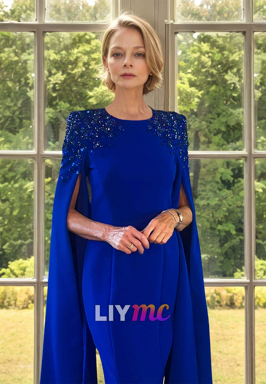 Scoop Long Sleeves Beaded Sleek Mermaid Mother of Bride Dress