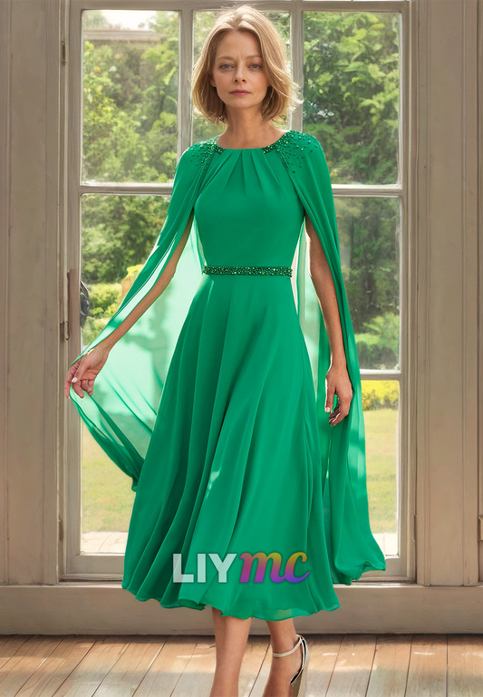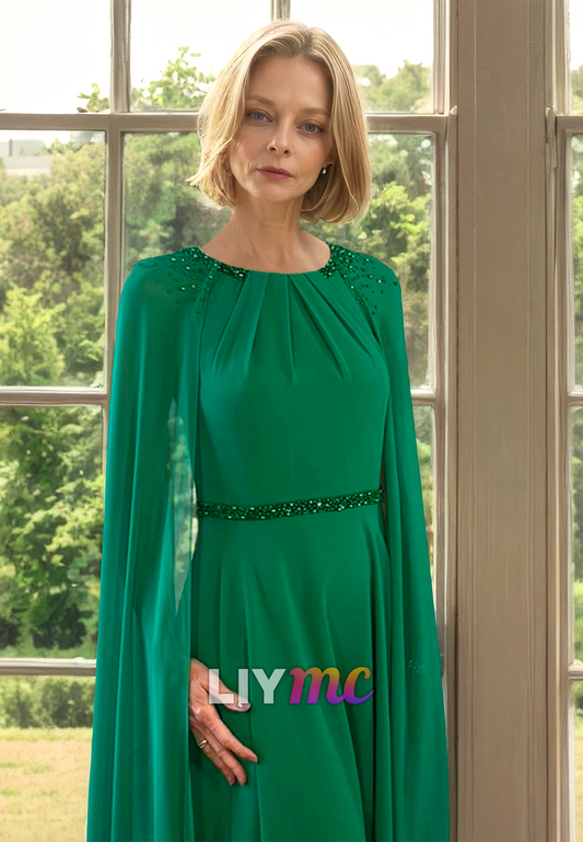 Scoop Long Sleeves Beaded Chiffon A-Line Mother of Bride Dress
