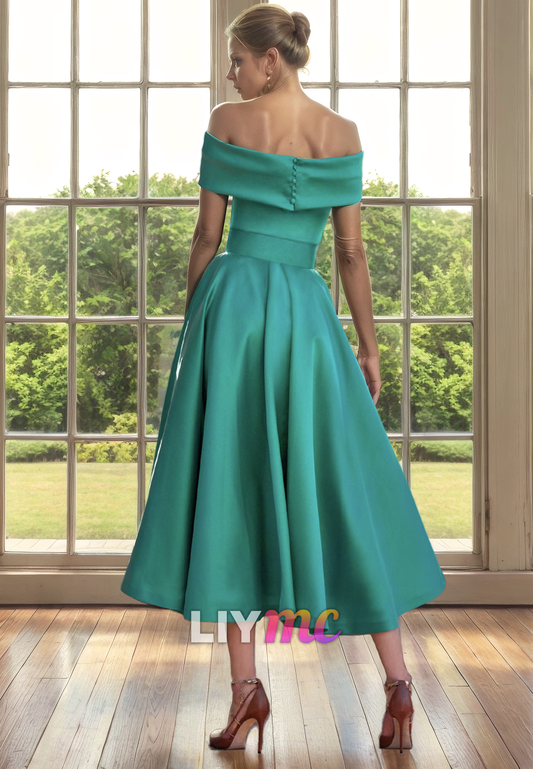 Off-Shoulder Sleeveless Sleek Pleated A-Line Mother of Bride Dress Cocktail Dress