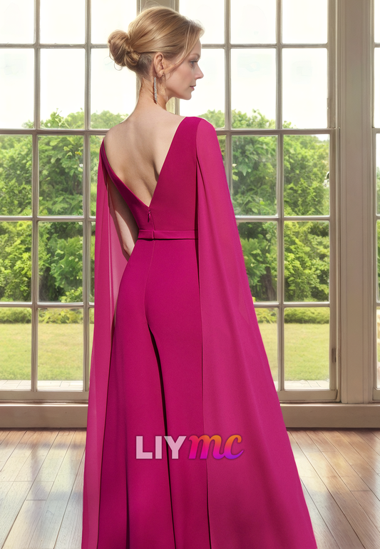 V-Neck Short Sleeves Chiffon Jumpsuit Mother of Bride Dress