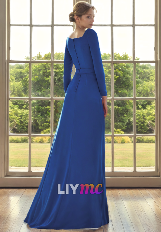Square Long Sleeves Ruched High Slit Mother of Bride Dress Cocktail Dress