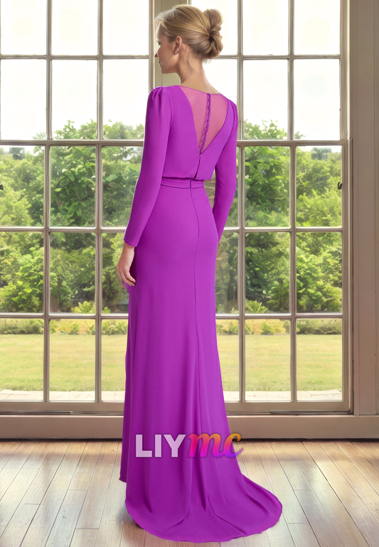 Asymmetrical Long Sleeves Sheath Side Slit Mother of Bride Dress Cocktail Dress