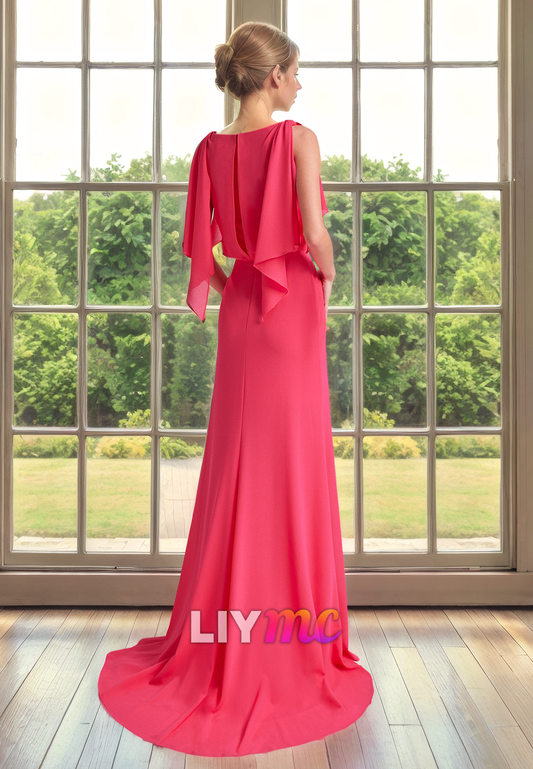 Asymmetrical Sleeveless Ruffled Sleek High Slit Mother of Bride Dress