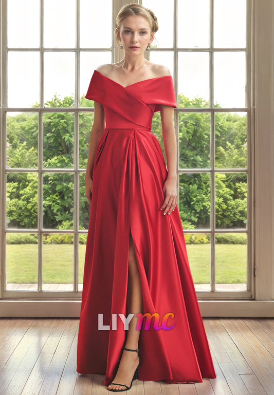 Off-Shoulder Strapless Ruched High Slit Long Mother of Bride Dress Cocktail Dress